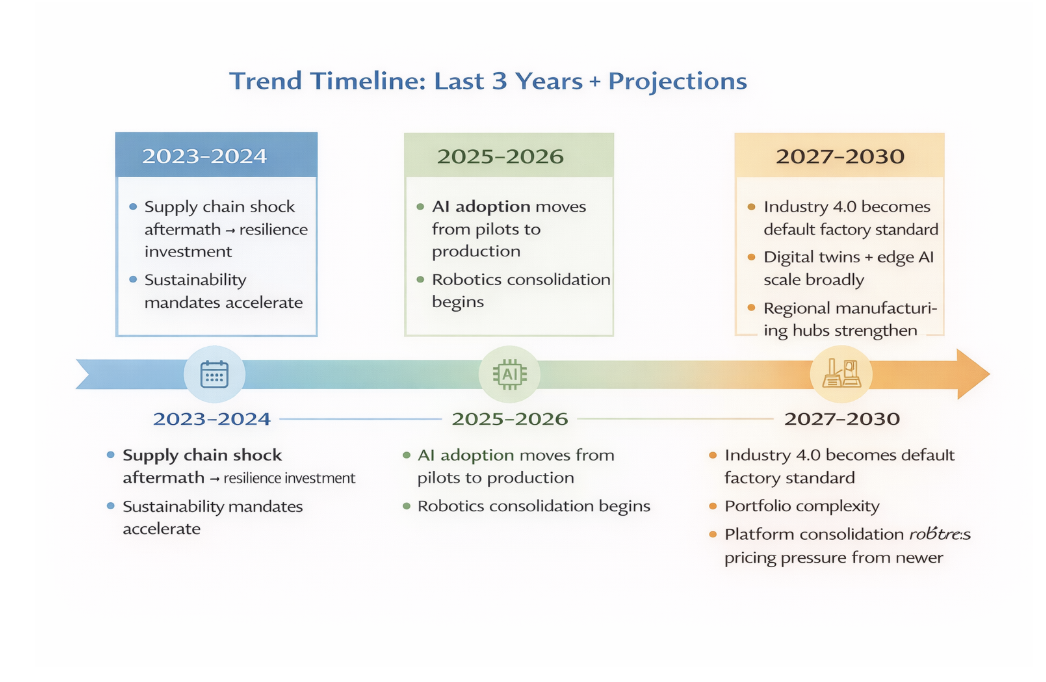 - The upgrade layers (Industry 4.0, smart factory systems, sustainability tech) are compounding much faster.