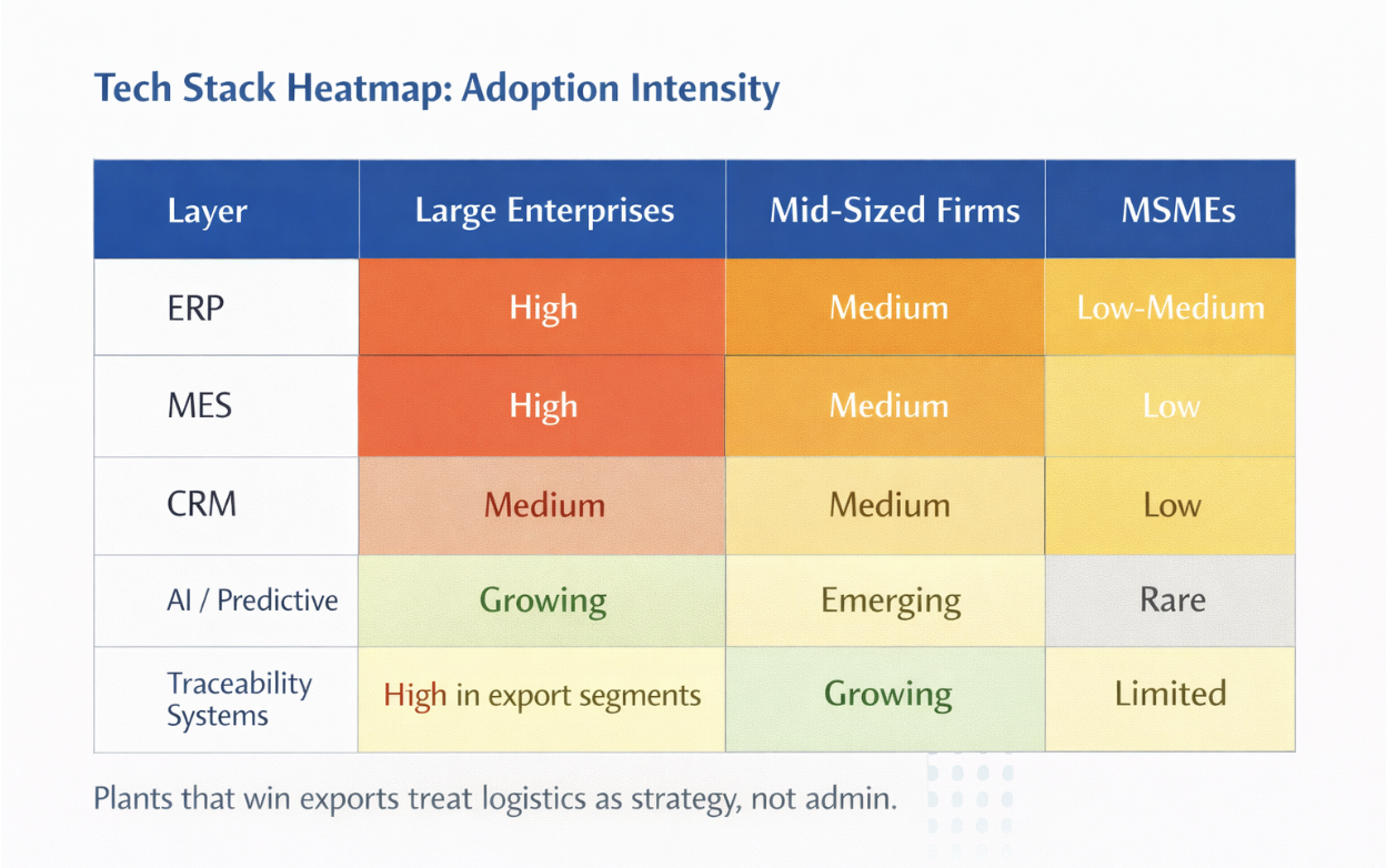| Operations | Highest increase | Automation, quality systems, traceability, lane-level logistics optimization | Execution and compliance increasingly define export readiness; reliability and documentation become differentiators |