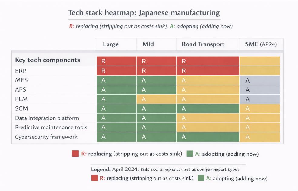 - Sector blending: “Japanese manufacturing” spans autos, electronics, chemicals, machinery, and semiconductors. Not all benchmarks apply equally to every subsector.